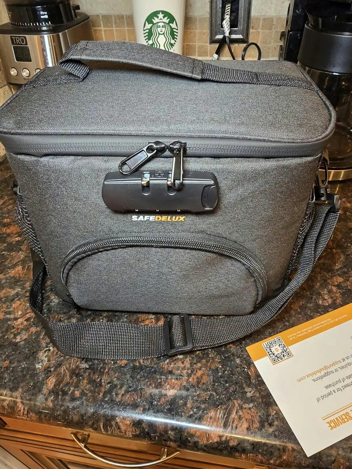 I was looking for a new lunch bag, wanting ample size, dark color, insulated. This SafeDelux Insulated Lunch Bag was just right. Though I don’t need a lock on my lunch, I can understand why some people might. This one is durable, leakproof, and has an adjustable shoulder strap as well as a short handle strap. It’s well insulated and has nice, accessible outer pockets as well. Zippers move freely.